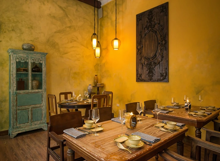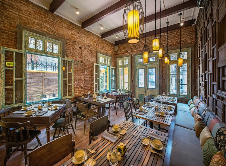Chủ nhân của nhà hàng đã dày công sưu tập bàn ghế và nhiều vận dụng từ thời trước giải phóng, những thiết kế Tây phương nhưng phảng phất nét Á đông đặc trưng của Hà Nội những năm 1910 - 1930. Phong cách Vintage hoài cổ sẽ mang lại cảm giác thư thái đặc biệt giữa sự náo nhiệt và chuyển động của một thủ đô.
