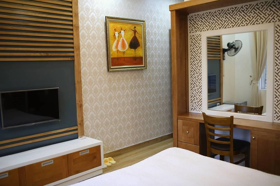 Đầy đủ các tiện nghi: Thang máy, Điều hòa, Tivi 43inch, Truyền hình cáp, Bàn phấn, Bàn trà, Tủ lạnh, Bình nóng lạnh, Wifi...